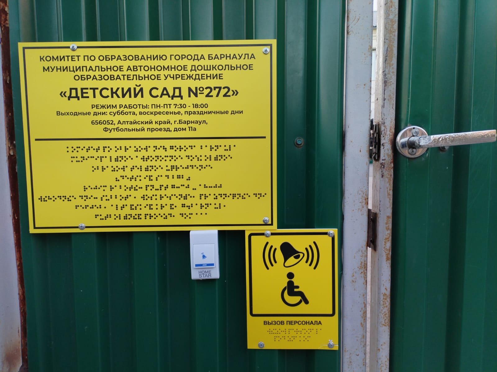 Специальных устройств и пандусов для обеспечения доступа в здание Учреждения инвалидов и лиц с ограниченными возможностями здоровья не имеется. Однако для данной категории имеется возможность беспрепятственного входа и выхода в здание и на территорию учреждения, передвижения по территории Учреждения. Установлены кнопки вызова для входа в Учреждение, вывеска с названием организации, графиком работы, выполненная рельефно-точечным шрифтом Брайля.